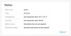 The employability of an AED is partly determined by the status of the battery and electrodes. Elements such as temperature and humidity have a major influence on this. Which can cause that an AED might not work, just in the crucial moment when you really need it.